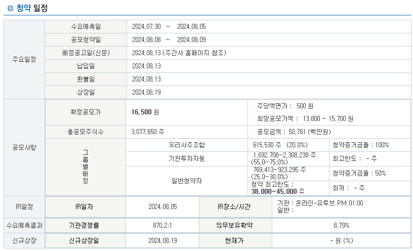 | 상장일 | 2024년 8월 19일(월) 예정 |
