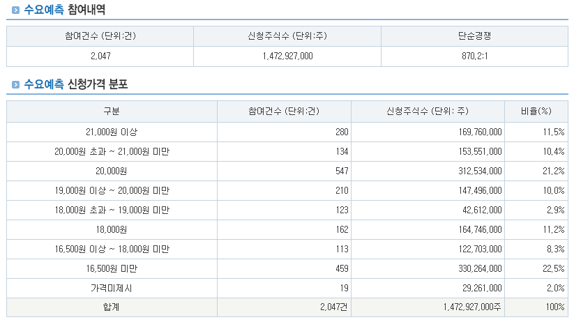 | 희망 공모가 밴드 | 13,800원 ~ 15,700원 |
