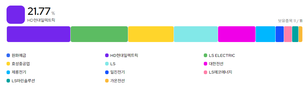 이 ETF의 주요 운용전략은 국내 AI전력설비 분야의 선두 기업 3사에 집중 투자하는 것입니다. 구체적으로 LS그룹, HD현대일렉트릭, 효성중공업의 비중이 전체 포트폴리오의 약 77%를 차지하고 있습니다. 이들 기업은 변압기, 전선, 구리 등 AI 전력 인프라의 핵심 영역에서 우수한 경쟁력을 보유하고 있습니다.