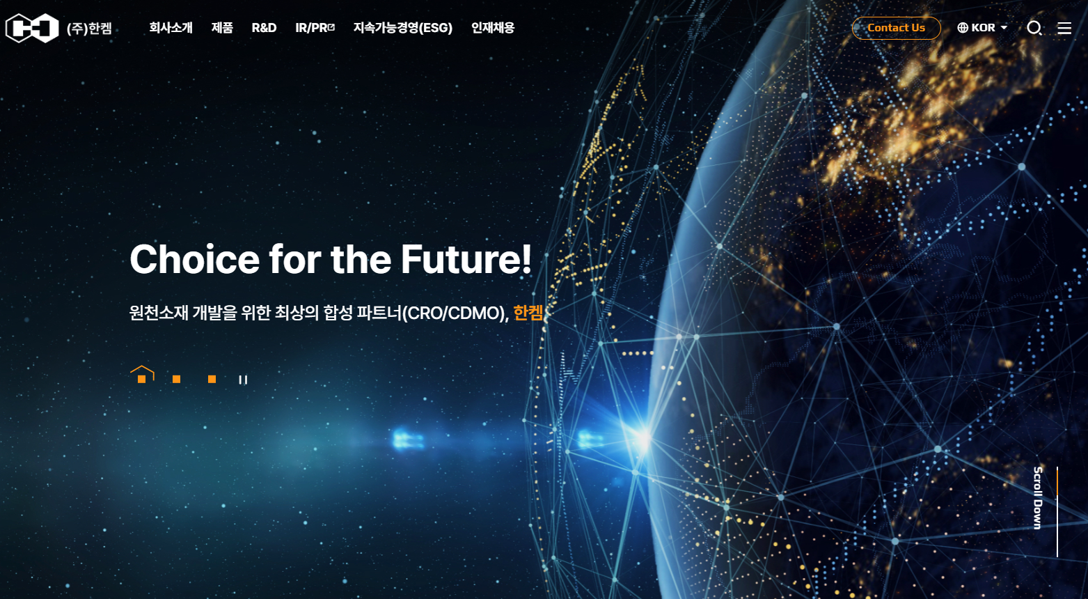 한켐은 1999년에 설립되어 유기화합물 신소재 분야에서 25년의 역사를 자랑하는 기업입니다. OLED소재, 촉매소재, 의약소재 등 다양한 유기화합물을 CRO(Custom Research Organization)와 CDMO(Custom Development Manufacturing Organization) 방식으로 전문적으로 생산하고 있습니다.