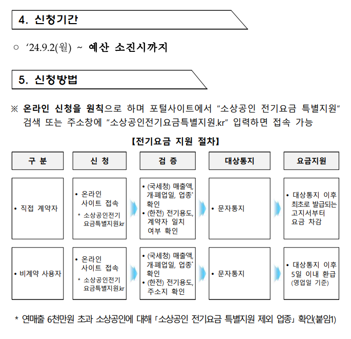 | 신청 방법 | 소상공인전기요금특별지원.kr 웹사이트에서 온라인 신청 |