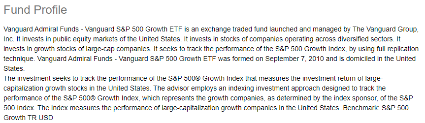 | 상품명 | Vanguard S&P 500 Growth ETF |