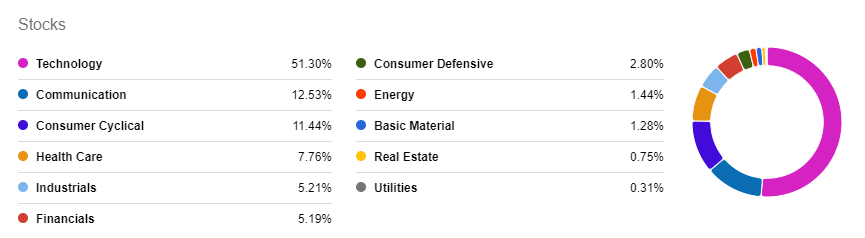 포트폴리오 구성을 살펴보면 상위 3개 종목이 35% 이상을 차지하고 있습니다. 빅테크 기업들이 주요 포트폴리오를 구성하고 있으며, 특히 애플, 마이크로소프트, 엔비디아의 비중이 매우 높습니다.