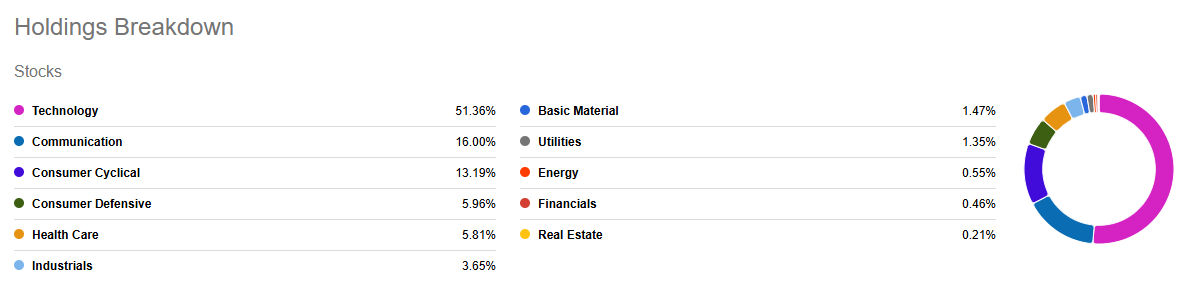 포트폴리오 구성을 살펴보면, QRMI는 대형 기술주 중심의 나스닥 100 종목들과 옵션 포지션을 함께 보유하고 있습니다. 상위 10개 종목이 전체 자산의 약 48%를 차지하며, 특히 Apple, Microsoft, NVIDIA 등의 기술 대기업이 높은 비중을 차지하고 있습니다.