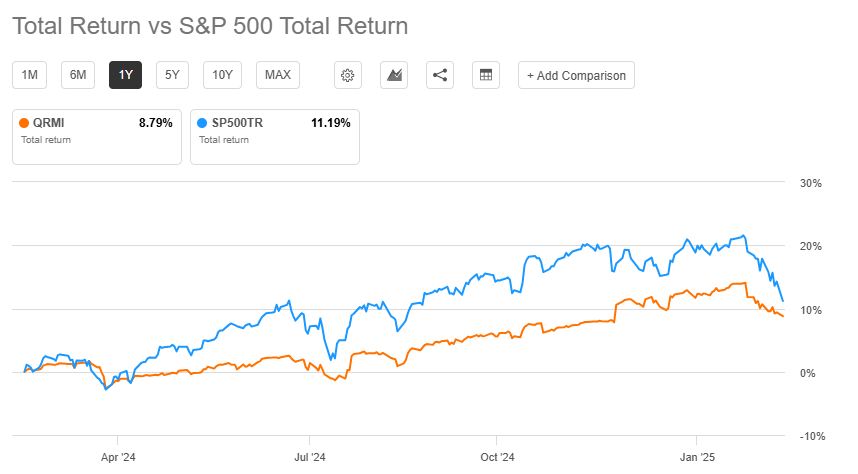 주목할 점은 최근 1년간의 수익률 패턴입니다. 단순 주가 상승만 고려한 Price Return은 -3.68%로 저조했으나, 배당금을 포함한 Total Return은 8.66%로 크게 개선되었습니다. 이는 QRMI의 높은 배당 전략이 주가 하락을 충분히 상쇄하고도 남는다는 점을 보여줍니다.