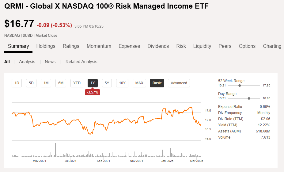 | 상품명 | Global X NASDAQ 100® Risk Managed Income ETF (QRMI) |
