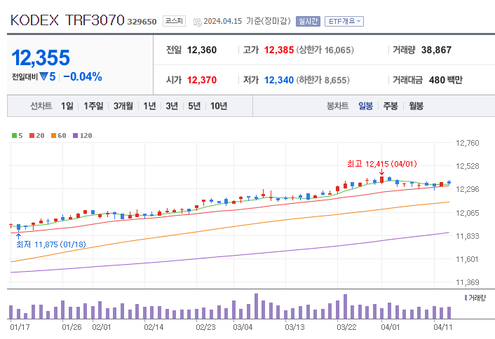TRF는 ETF 형태로도 존재해 장중에 자유롭게 매매할 수 있다는 장점이 있습니다. 퇴직연금에서 좀 더 공격적인 포트폴리오를 구축하고 싶다면 KODEX TRF7030 같은 주식비중 70% 상품도 고려 대상이 될 수 있겠죠.