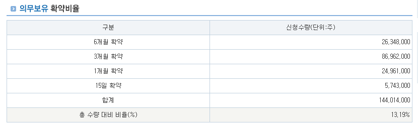| 의무보유확약 | 건수 비율 11.6%, 수량 비율 13.19% |