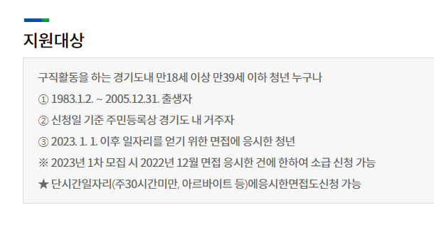 - 지원 자격: 2024년 1월 1일 이후 면접에 임한 만 18~39세 경기도 거주 청년