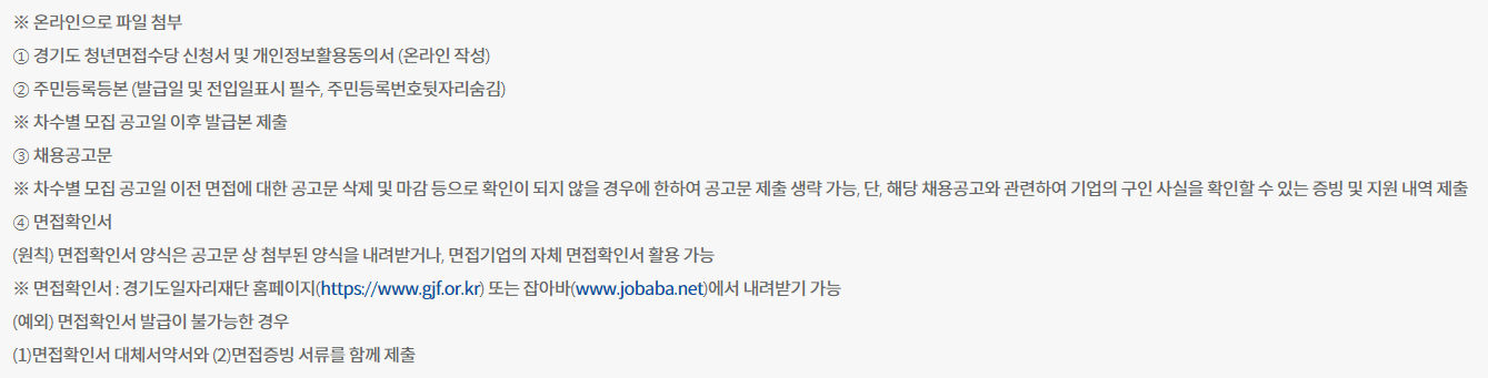 2024 경기도 청년 면접수당 제출 서류 유의사항