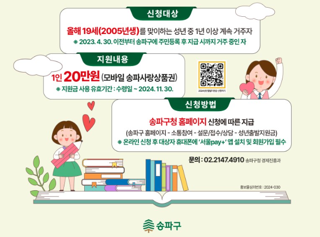 ㆍ신청 자격: 2023년 4월 30일 이전부터 송파구에 1년 이상 계속 주민등록을 하고 지급 시까지 거주 중인 자