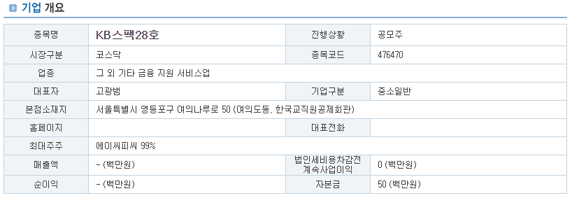 회사명 | KB제28호스팩(KB제28호기업인수목적 주식회사) |