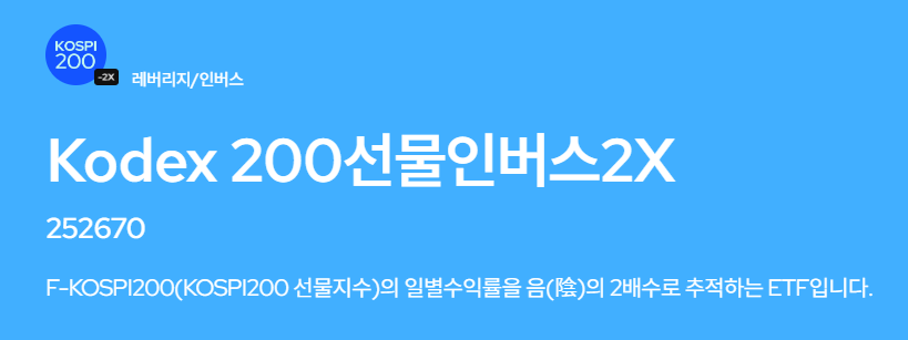 이 지수를 기초로 하는 KODEX 200선물인버스2X ETF는 지수의 일간 수익률을 -2배로 추종하는 것이 목표입니다. 쉽게 말해 KOSPI200 선물지수가 하루 동안 1% 하락하면, 이 ETF는 2%의 상승 효과를 노리는 것입니다.
