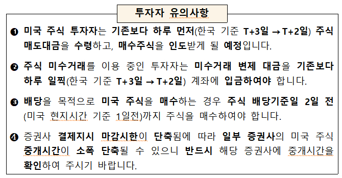 | 미국 SEC 결제일 | T+2 | T+1 |