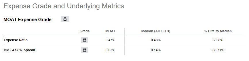 MOAT ETF의 연간 운용보수는 0.47%로 책정되어 있습니다. 이는 시장 평균 수준인 0.48%와 유사합니다.