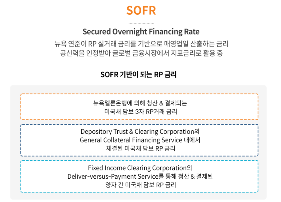 | SOFR 금리 | 미국 단기 지표금리로 재무부 증권 담보 RP 거래 기반 산출 |