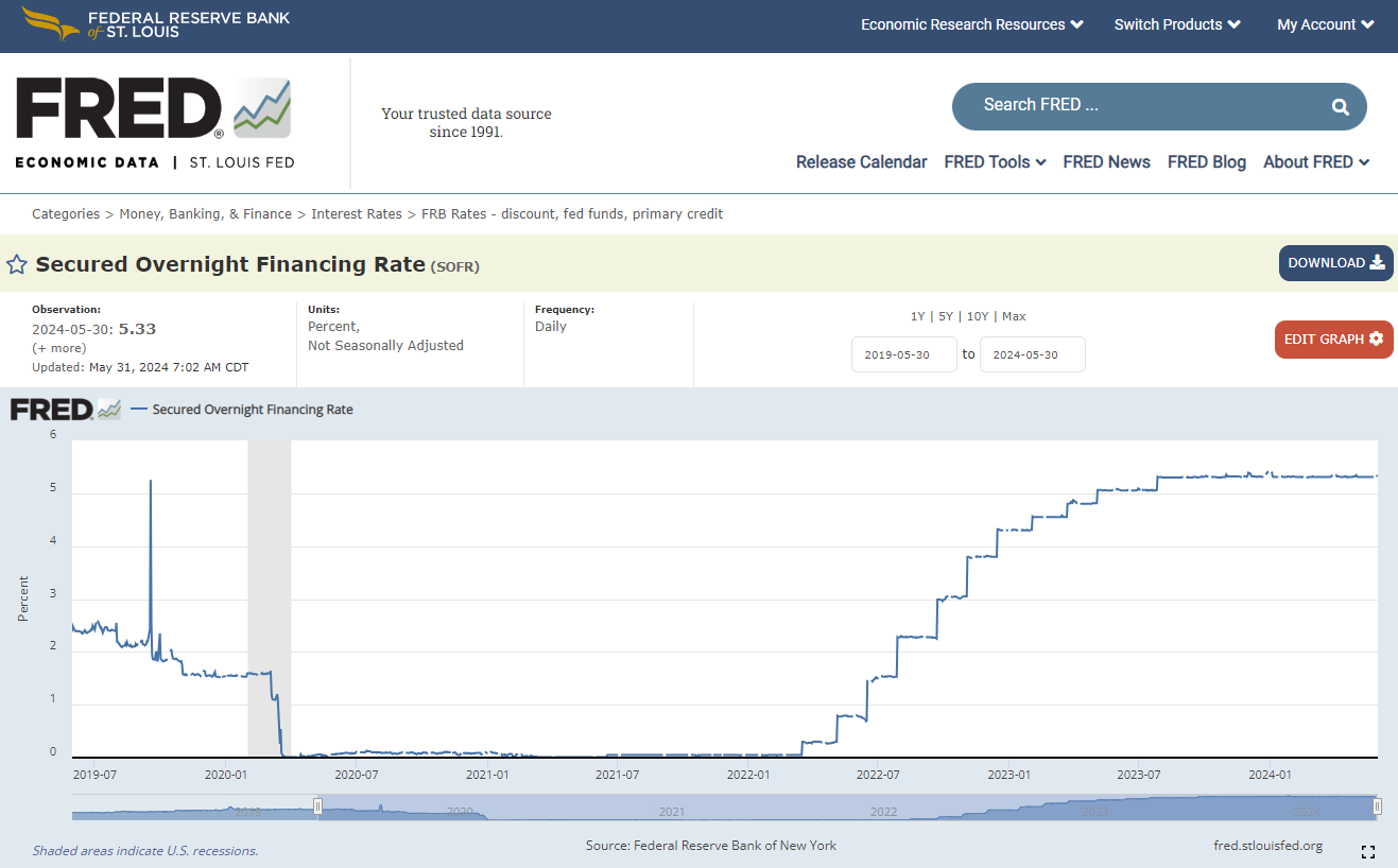 또한 뉴욕연준 홈페이지(https://www.newyorkfed.org/)에서도 매일 오전 8시(동부시간 기준)마다 전일의 SOFR 금리를 공시하고 있으니 참고할 만합니다. 투자자들은 이같은 공시 채널을 통해 SOFR 금리의 추이를 면밀히 점검할 수 있습니다.