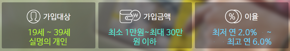 | 가입대상 | 만 19세 ~ 39세 실명의 개인 |