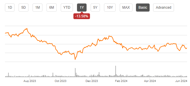 지난 1년 동안의 주가 수익률은 -13.58%, 3년 수익률은 -22.69%로 신통치 않았습니다. 그러나 배당금을 고려하면 그 폭은 좁혀집니다.