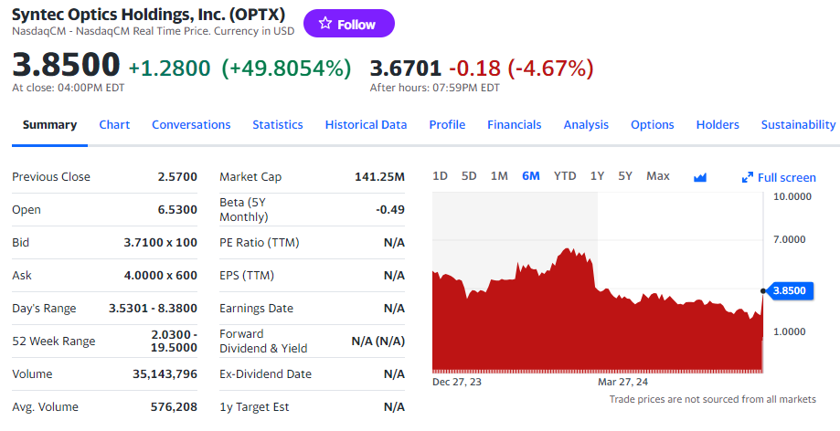 | 종목명 | 신텍 옵틱스 홀딩스(OPTX) |